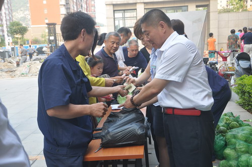 銀豐山莊和銀豐花園物業(yè)服務(wù)中心提前利用短信、宣傳欄、橫幅等形式通知業(yè)主特賣活動(dòng)時(shí)間及地點(diǎn)。業(yè)主們積極踴躍參與,不到一小時(shí)甘藍(lán)菜就被業(yè)主一搶而空。
