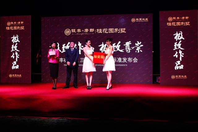 發(fā)布會(huì)現(xiàn)場(chǎng),除了對(duì)銀豐標(biāo)準(zhǔn)之三心物業(yè)服務(wù)標(biāo)準(zhǔn)進(jìn)行介紹外,還為到場(chǎng)嘉賓們準(zhǔn)備了豐盛的晚宴、精彩的文藝表演及激動(dòng)人心的抽獎(jiǎng)活動(dòng)。半山之上,月色之中,飲美酒、品佳肴,嘉賓們樂在其中。舞蹈節(jié)目華麗的舞姿呈現(xiàn)與眾不同的美感,小提琴演奏悠揚(yáng)的琴聲讓人感受心靈的悠閑,為嘉賓了帶來(lái)了一段愉悅的時(shí)光。抽獎(jiǎng)環(huán)節(jié)中,10萬(wàn)元購(gòu)房代金券、GUCCI皮包、iphone6等讓人驚艷的眾多超級(jí)大獎(jiǎng)在現(xiàn)場(chǎng)一一抽出。