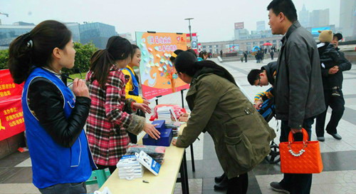 11月29日上午十點(diǎn)鐘,“拒絕霧霾,關(guān)愛(ài)準(zhǔn)媽媽從身邊做起”防霧霾口罩大放送活動(dòng)在濟(jì)南泉城廣場(chǎng)舉行。此次活動(dòng)以“拒絕霧霾,關(guān)愛(ài)準(zhǔn)媽媽從身邊做起”為主題,由山東省臍血庫(kù)聯(lián)合濟(jì)南市志愿者協(xié)會(huì)共同發(fā)起。