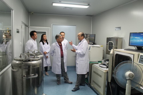 2014年9月14日,新疆自治區(qū)人民醫(yī)院副院長克力木帶領相關主任來到山東省齊魯細胞治療工程技術有限公司進行參觀考察及學術交流。細胞治療公司總經理郭紅、山東省臍血庫首席科學家沈柏均等公司領導陪同參觀。