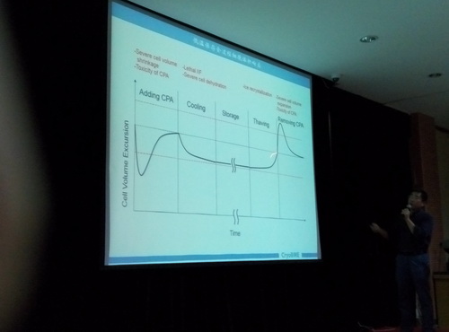 圍繞多尺度下(細胞、組織和器官尺度)生命材料的長期深低溫保存的原理、方法、技術(shù)和應(yīng)用等方面,趙教授系統(tǒng)地闡述了低溫保存過程可能產(chǎn)生的各種損傷及其物理與化學(xué)機制,示例性地給出典型細胞和組織深低溫保存過程的優(yōu)化方法。同時,他還介紹了中國科技大學(xué)低溫生物醫(yī)學(xué)工程實驗室的科研團隊、取得成果和研究方向。其中,提高臍帶間充質(zhì)干細胞低溫保存與復(fù)蘇活性的研究、干細胞凍干粉保存方法、細胞復(fù)蘇后快速洗除保護劑設(shè)備開發(fā)成果轉(zhuǎn)化、通用性玻璃化冷凍保護劑開發(fā)和大尺度器官玻璃化冷凍保存等課題與我們的業(yè)務(wù)及發(fā)展方向密切相關(guān),引起大家濃厚興趣。在隨后的交流中,趙教授一一解答了大家的問題,讓研發(fā)人員了解了國內(nèi)外低溫生物學(xué)最新的研究動態(tài)。