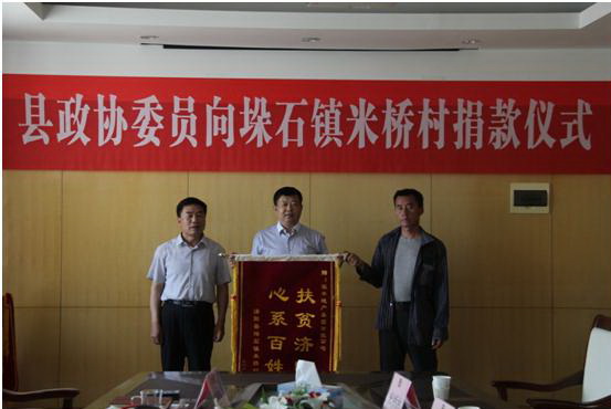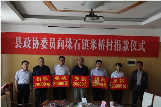 2017年5月12日下午,濟(jì)陽縣政協(xié)在濟(jì)陽縣政府辦公樓6樓組織“濟(jì)陽縣政協(xié)委員向垛石鎮(zhèn)米橋村捐款儀式”。出席本次捐款儀式的有濟(jì)陽縣政協(xié)主席任道勝、副主席魏長亭、垛石鎮(zhèn)領(lǐng)導(dǎo)、銀豐房地產(chǎn)開發(fā)(濟(jì)陽)有限公司總經(jīng)理夏培斌及濟(jì)陽縣第十屆政協(xié)企業(yè)界代表,濟(jì)陽縣政協(xié)秘書長盛偉主持儀式。